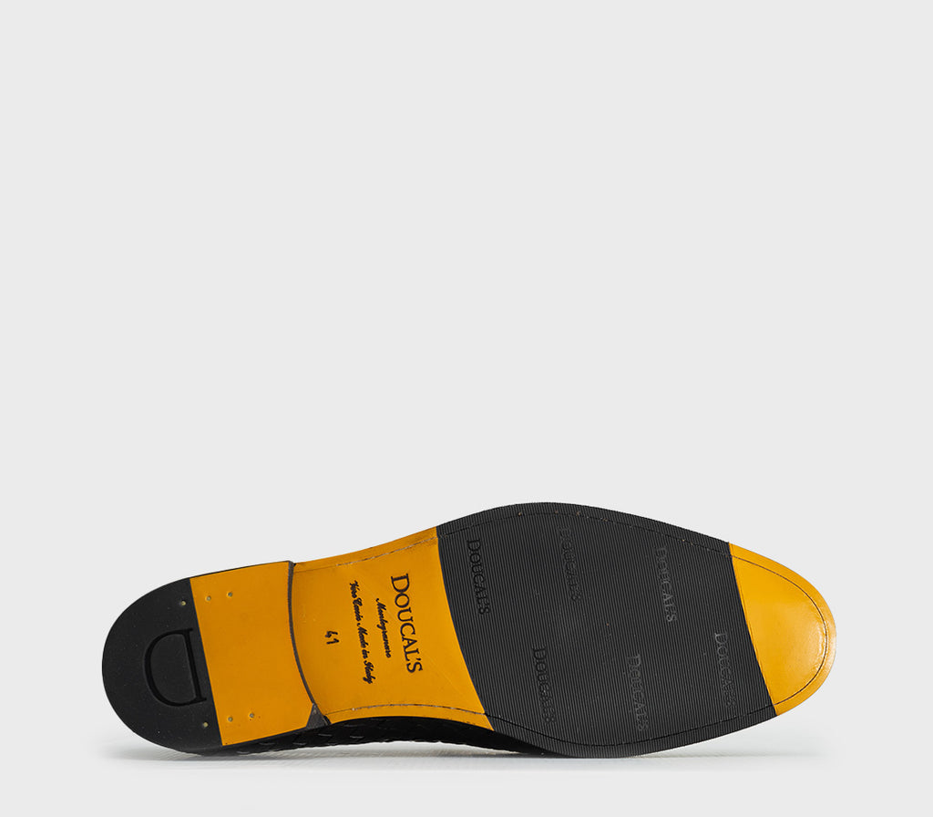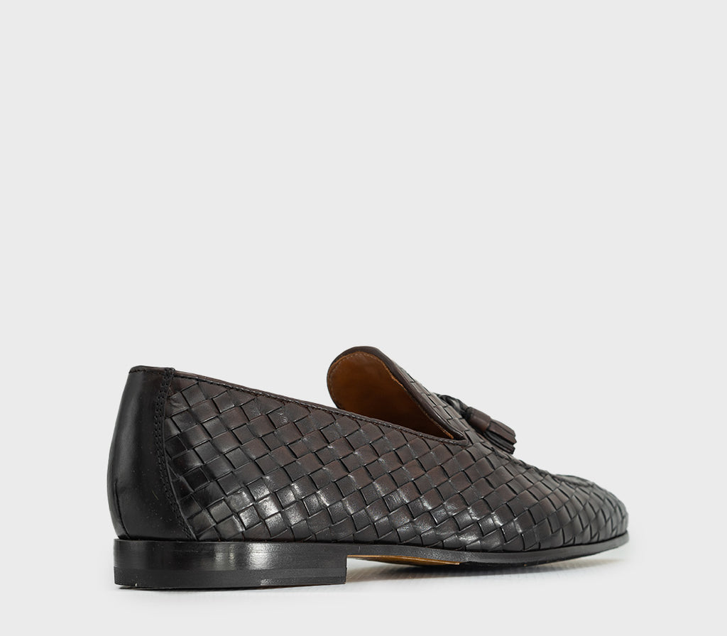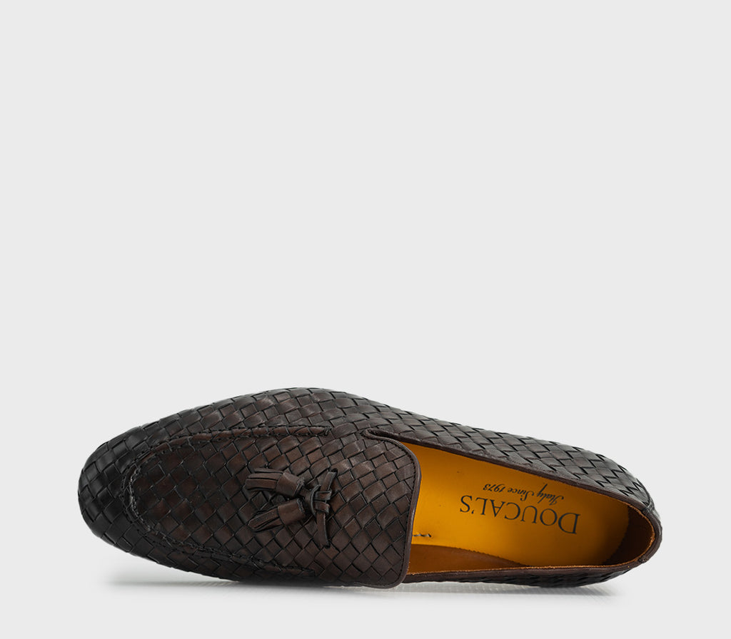 DOUCAL'S Δερμάτινο Πλεκτό Μοκασίνι με Φουντάκια Καφέ