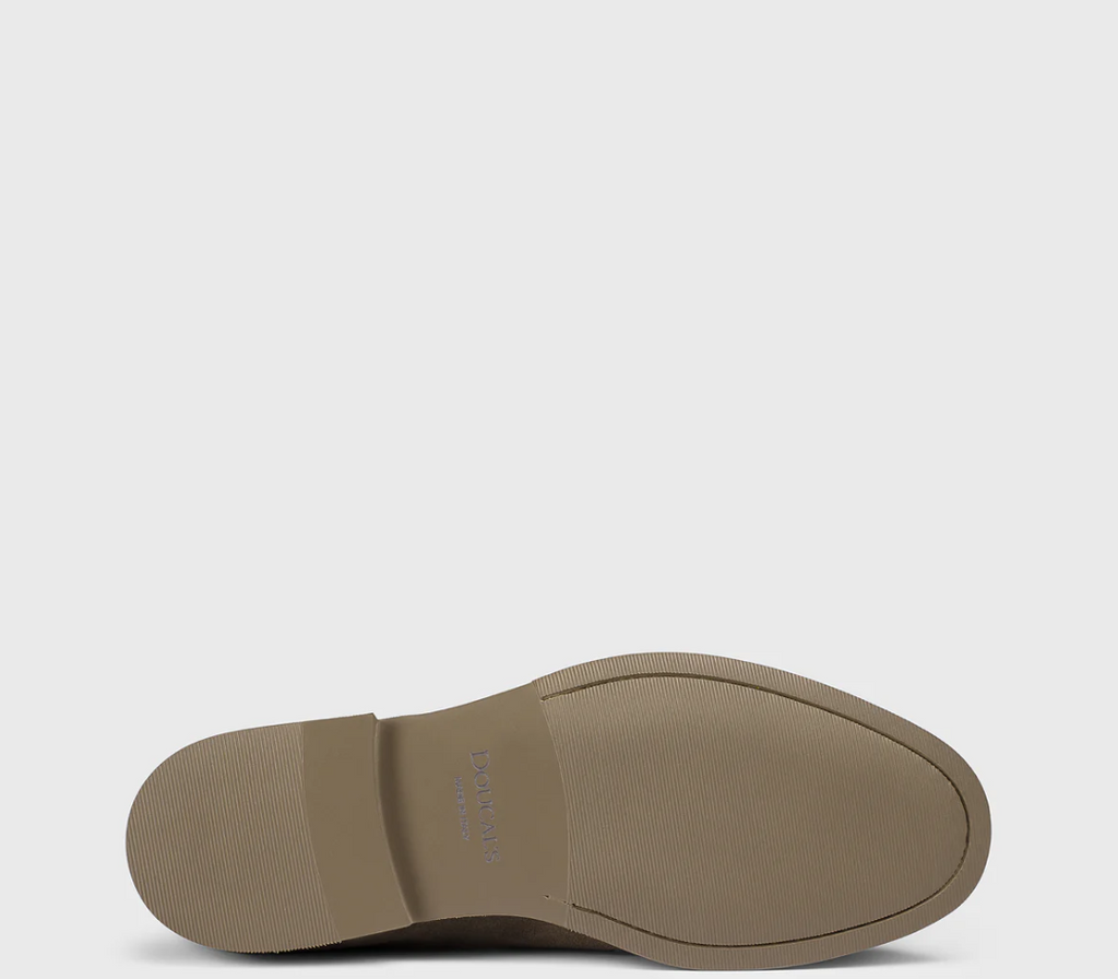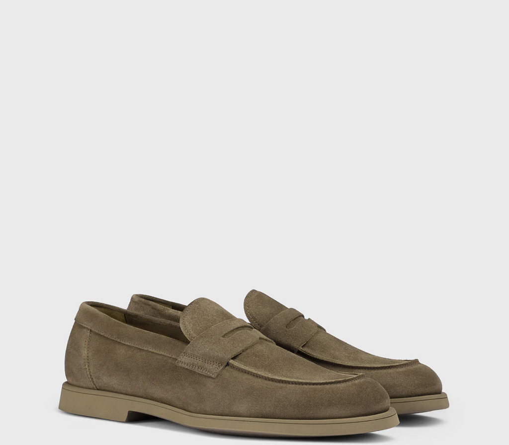 Handmade suede leather penny loafers by the brand Doucal's.