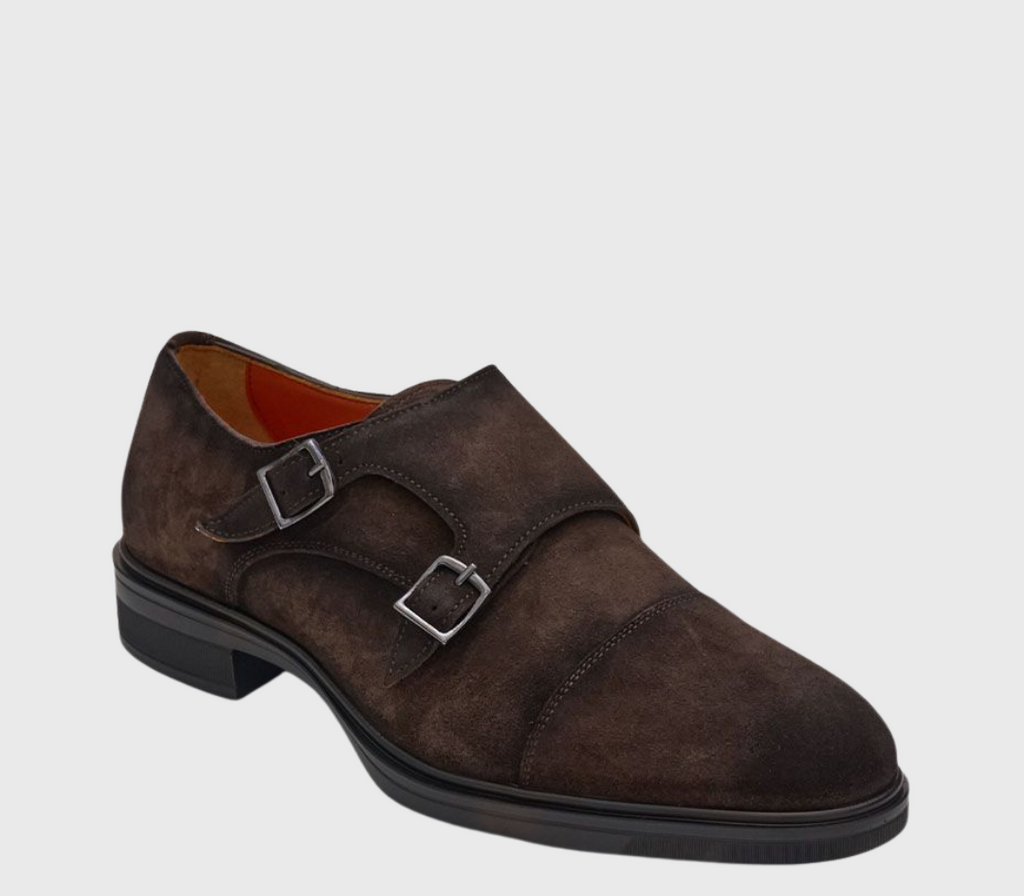 PER LA MODA Suede Monk Strap Καφέ 517FC